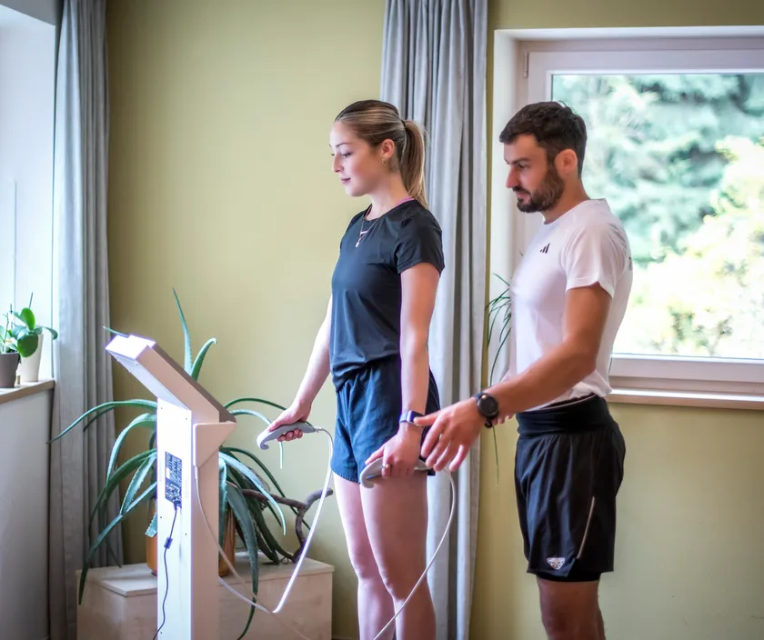 VALD-Analyse für Kraftverläufe & Dysbalancen, Maximalkrafttests (Squat & Deadlift), plus BIA für Körperkomposition & Belastungssteuerung.